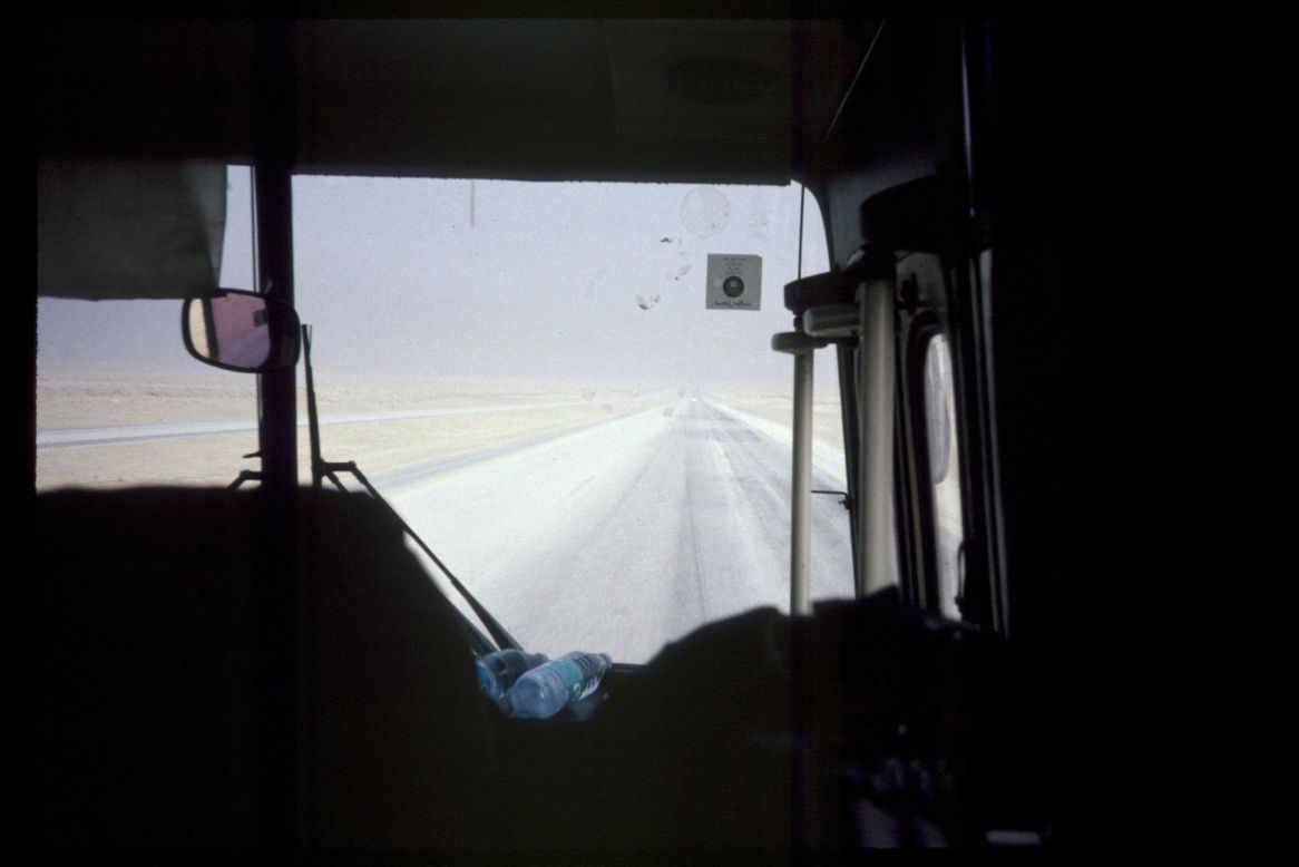 Even before we crossed the border, the smoke from the countless burning oil wells was visible. As we rolled on, we got even closer to them.